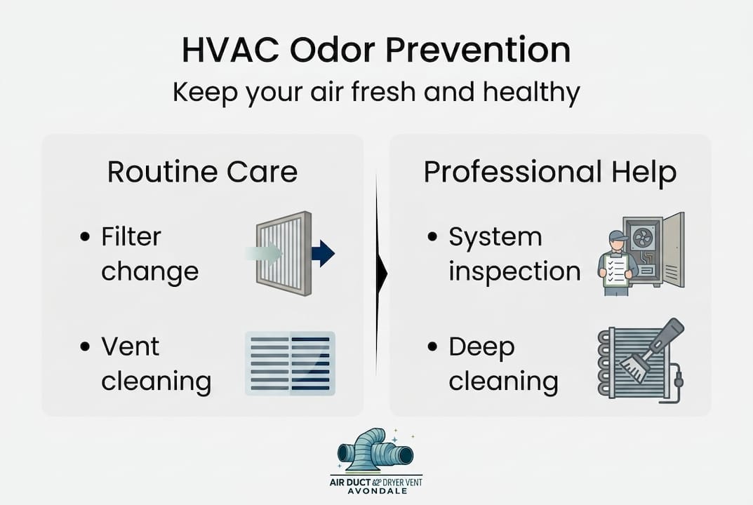 - Regular maintenance with filter changes, humidity control, and annual inspections prevents recurring odors and improves air quality.