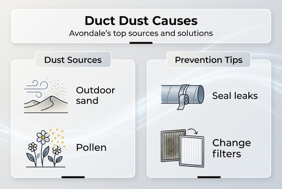 Avondale's desert environment creates dust challenges that homeowners in other climates simply don't face. The combination of natural weather patterns, low humidity, and year-round HVAC demands means your ductwork accumulates dust faster and requires more frequent attention than national averages suggest.