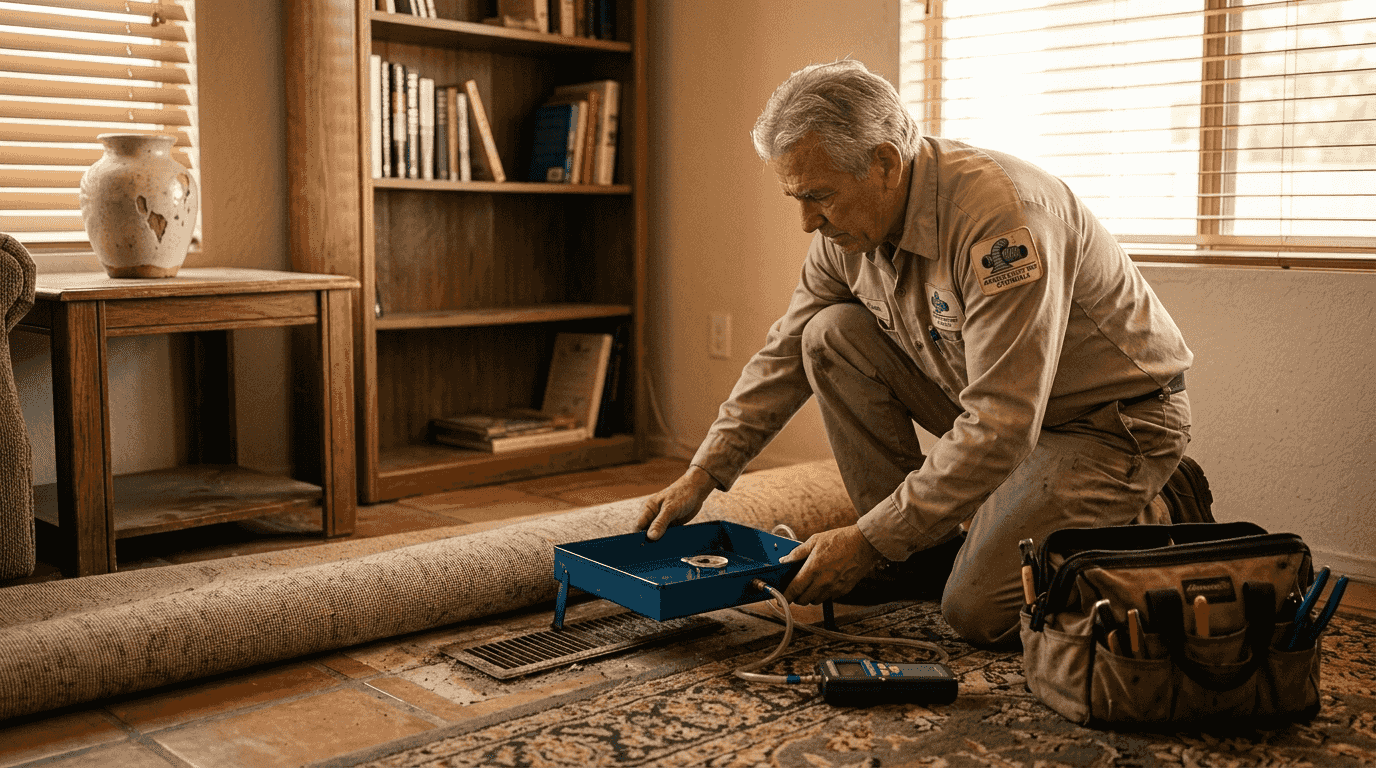 Arizona's desert environment creates unique conditions that accelerate duct system degradation. Dust accumulation inside ductwork reduces airflow capacity and provides substrate for allergen growth. Fine particulates enter through tiny gaps and settle in horizontal runs where air velocity drops. Each cooling cycle redistributes this dust throughout your living space. The problem compounds in homes near construction sites or unpaved areas where airborne soil concentrations run higher.