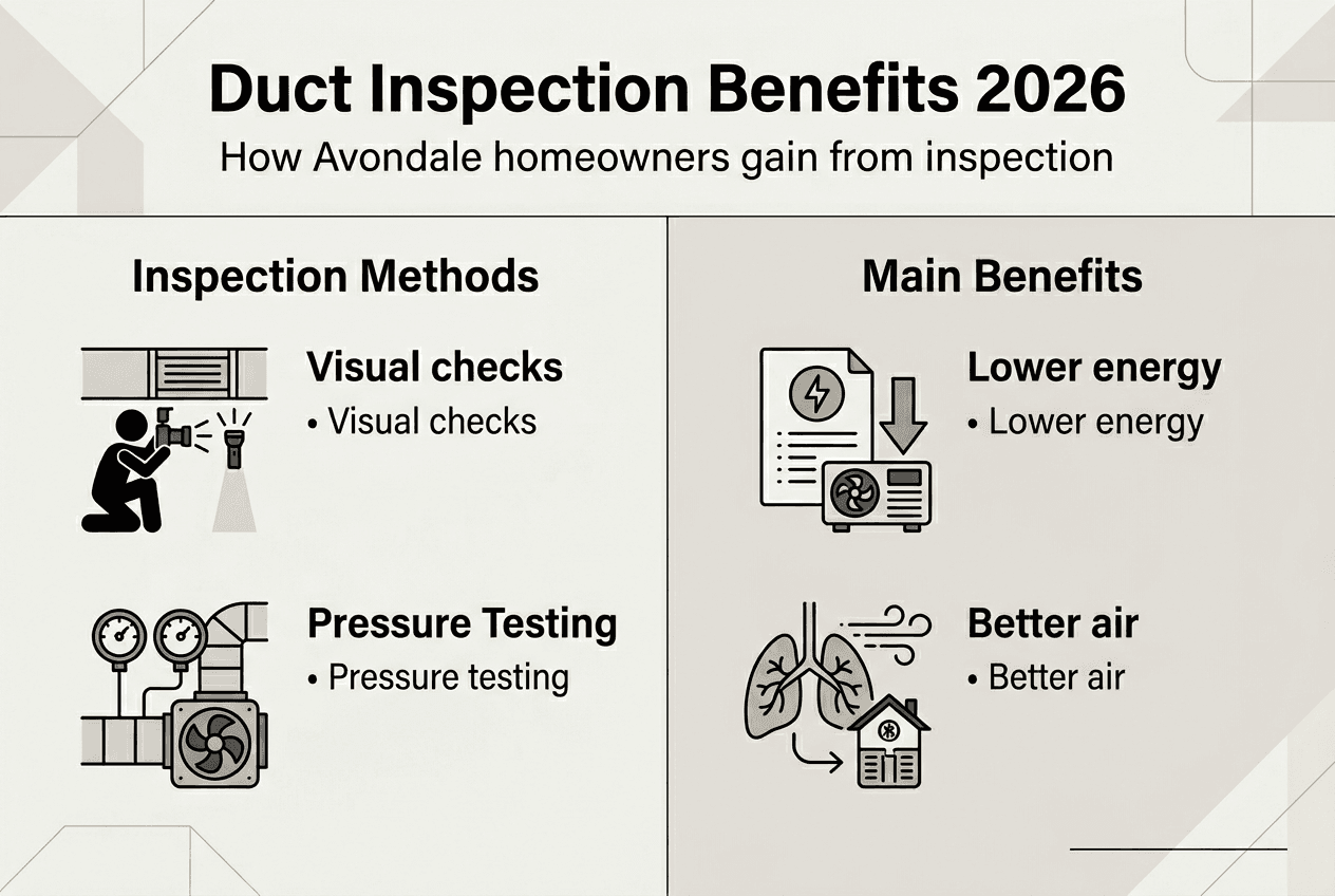 Many homeowners in Avondale underestimate how hidden duct problems quietly inflate their cooling bills and compromise indoor air quality. Your HVAC system works overtime when leaky ductwork pulls hot attic air into your living space, forcing your AC to run longer cycles. Duct inspection reveals invisible issues like leaks, blockages, and dust buildup that impact both energy efficiency and the air you breathe. This guide explains what professional duct inspection involves, how it benefits your home or small business, and why Avondale's desert climate makes regular checks especially valuable for maintaining comfort and controlling costs.