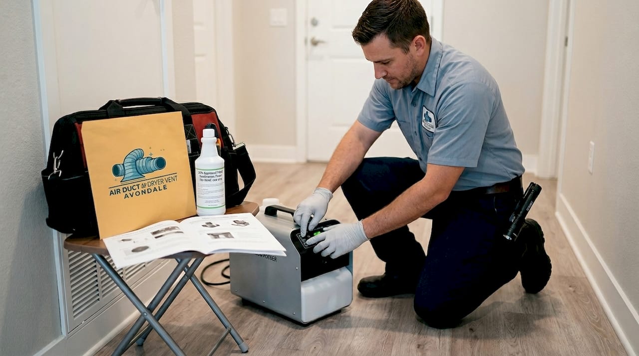 Pro Tip: In Avondale's dry desert climate, hydrogen peroxide fogging is one of the safest and most effective options because low humidity allows the agent to disperse evenly and reach more surface area inside the ducts without leaving excessive moisture behind.
